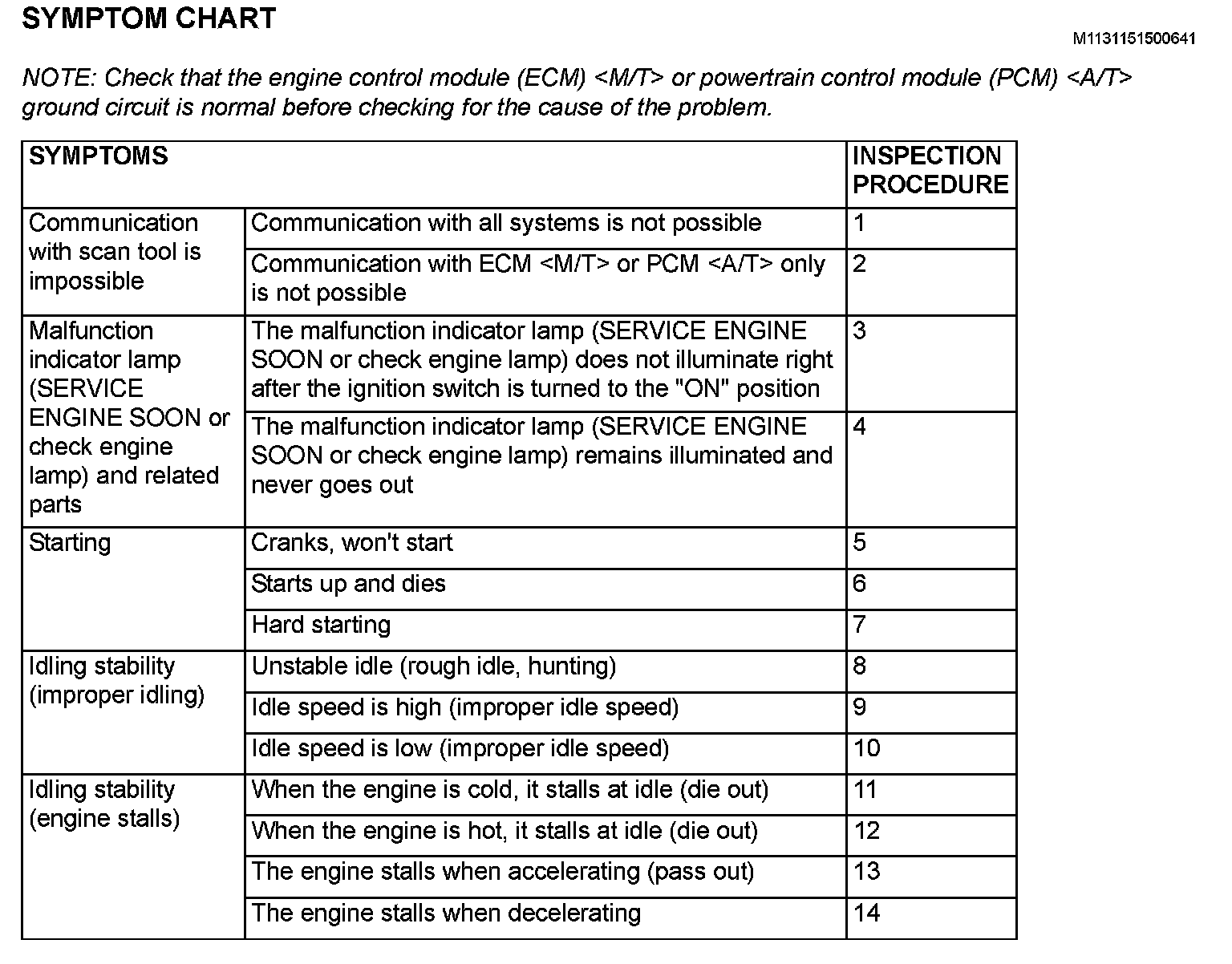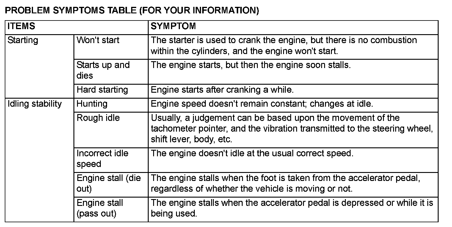Problems Symptoms Table (For Your Information) Part 1: