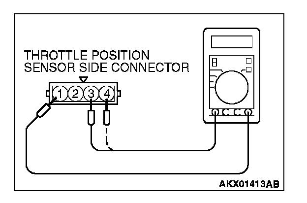 2. Measure the resistance between throttle position sensor side connector terminals No. 1 and No. 4.