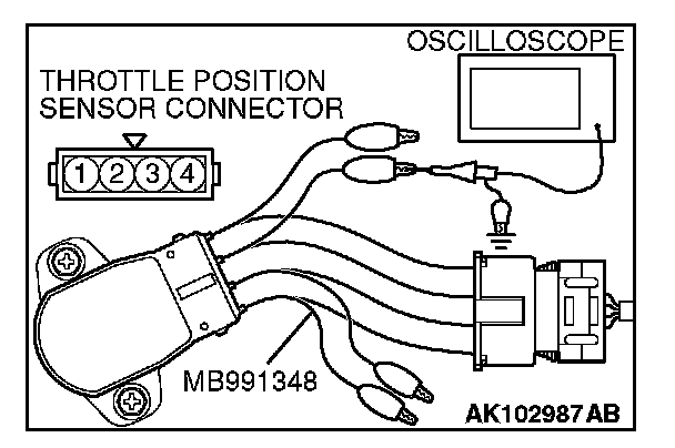 2. Connect the oscilloscope probe to the throttle position sensor side connector terminal No. 3.