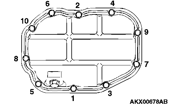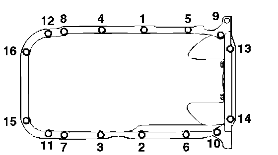 Oil pan, lower bolt 11 ± 1 Nm (95 ± 9 inch lbs.)