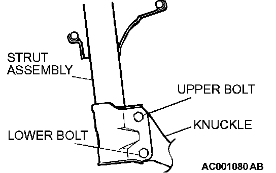 1. Estimate how much additional camber adjustment is required. Using the table below, select the camber adjusting bolt, and then replace the knuckle and strut assembly connection bolts (upper bolt, lower bolt) with the selected bolts.