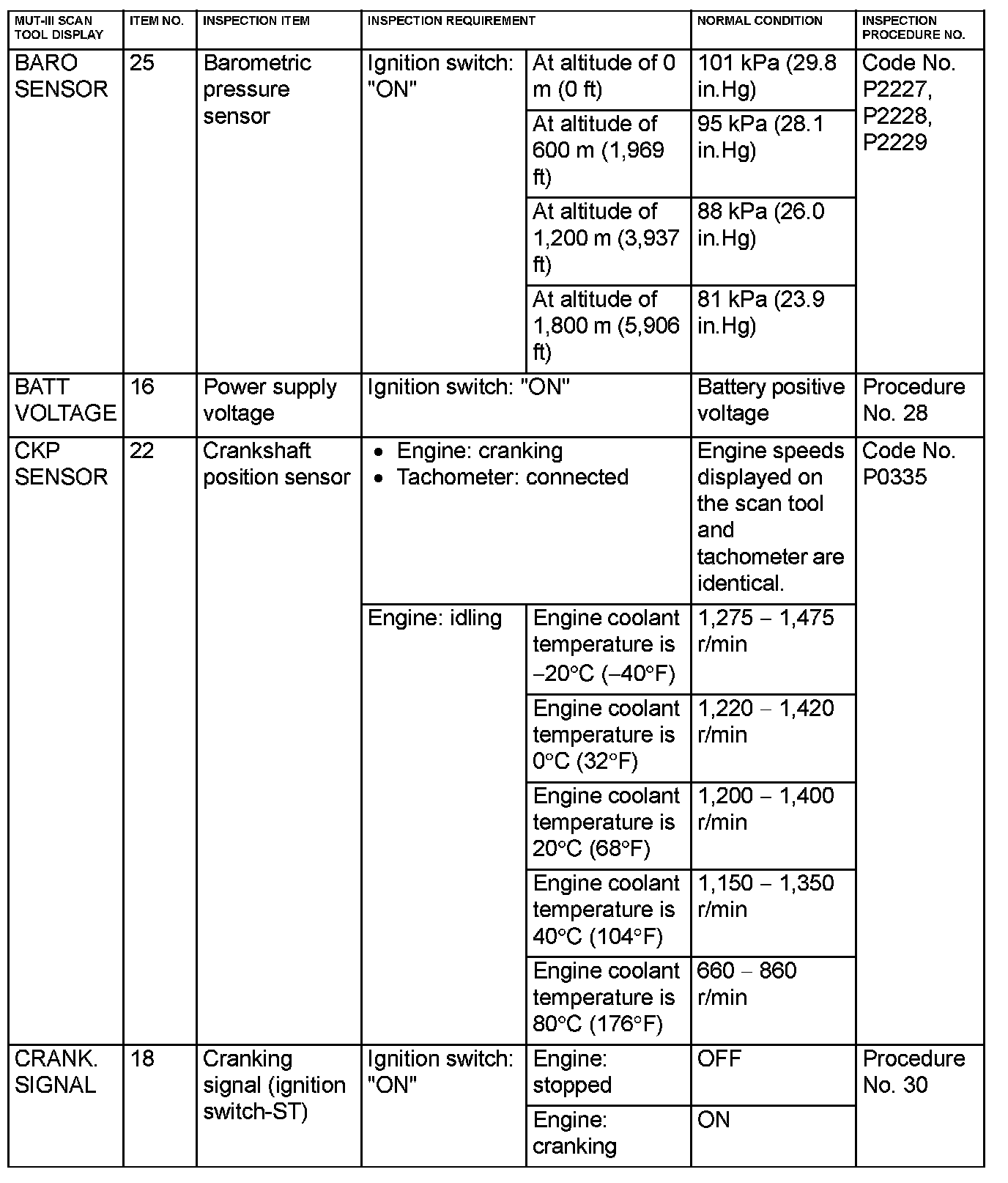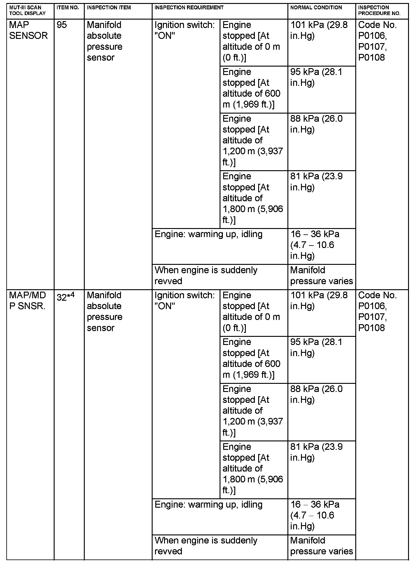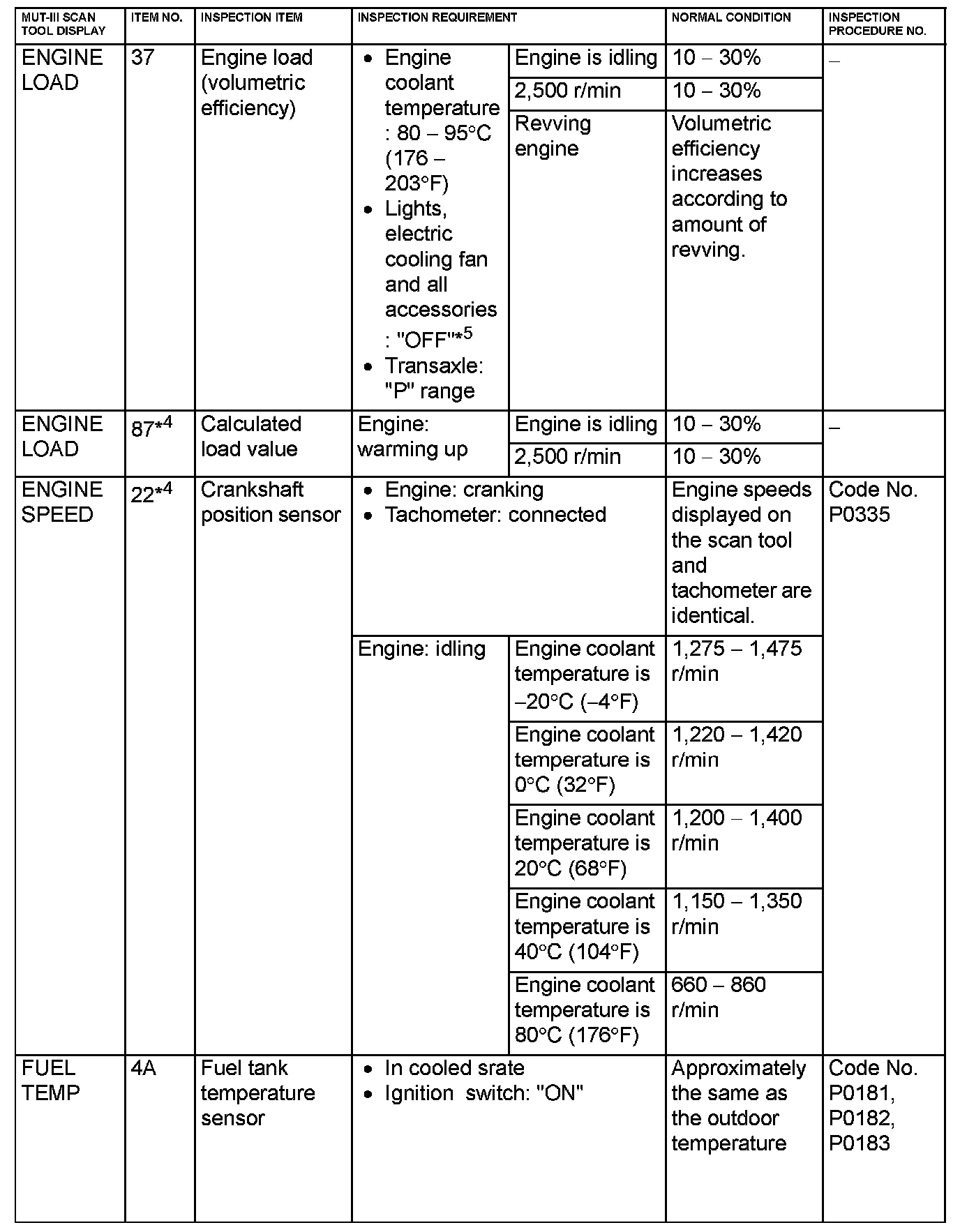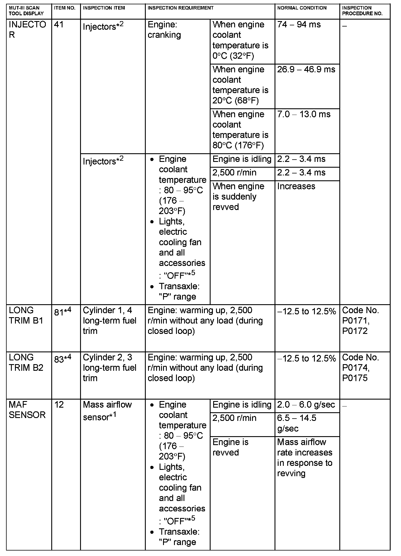 NOTE: *1: In a new vehicle [driven approximately 500 km (311 mile) or less], the mass airflow sensor output value is sometimes 10% higher than the standard value.
