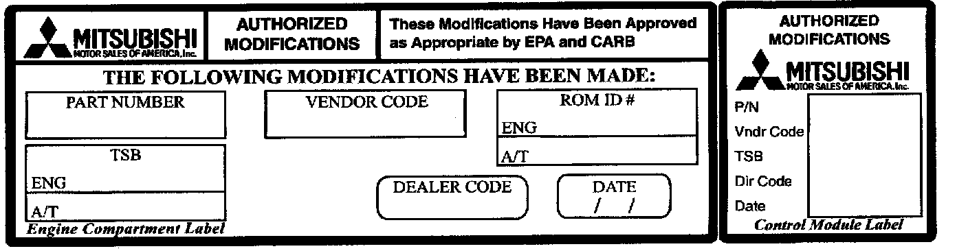 - "Engine Compartment/Control Module" Labels p/n MSSF-024G-00