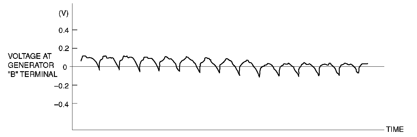 NOTE: The voltage waveform of the generator "B" terminal can undulate as shown. This waveform is produced when the regulator operates according to fluctuations in the generator load (current), and is normal for the generator.