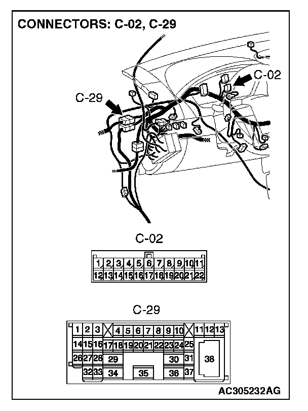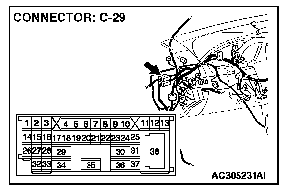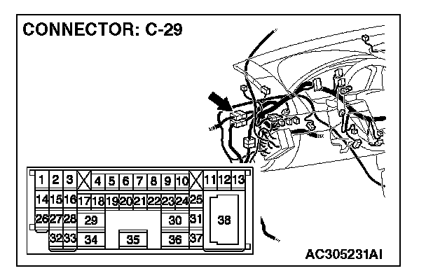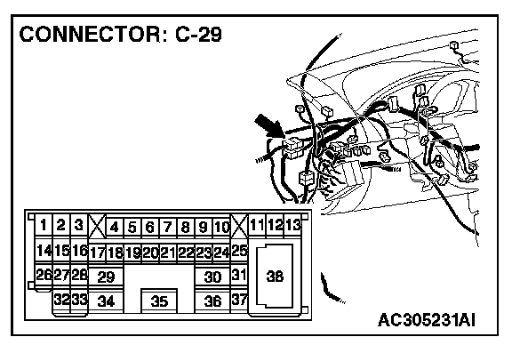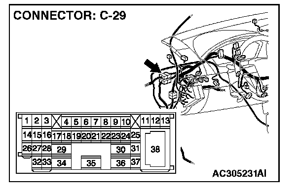 STEP 1. Check intermediate connector C-29 for loose, corroded or damaged terminals, or terminals pushed back in the connector.