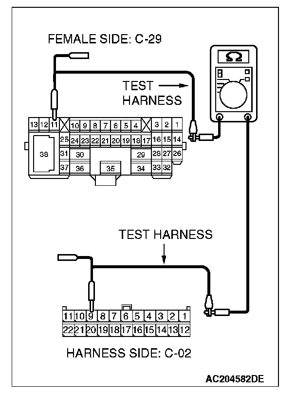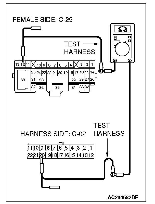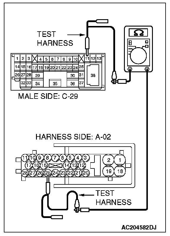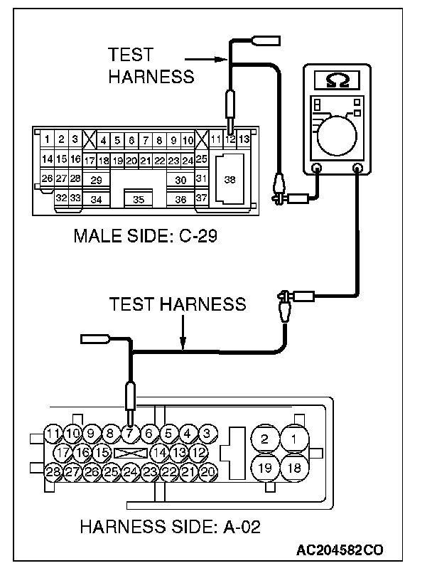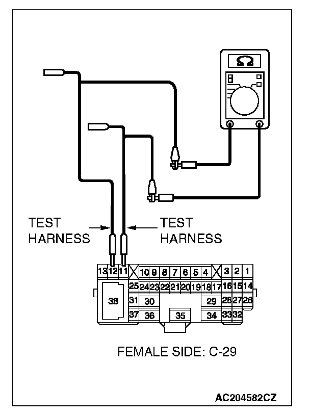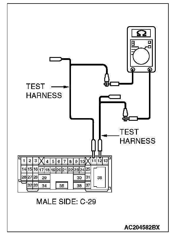 1. Disconnect intermediate connector C-29, and measure the resistance at the male side (at front wiring harness side).