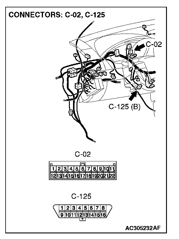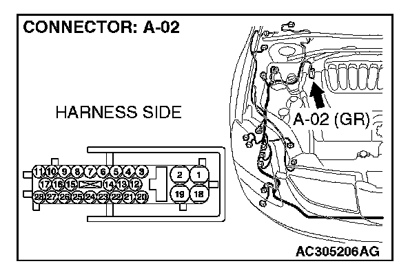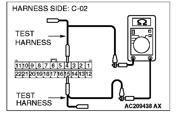 1. Disconnect joint connector (3) C-02, and measure the resistance at the wiring harness side of joint connector (3) C-02.