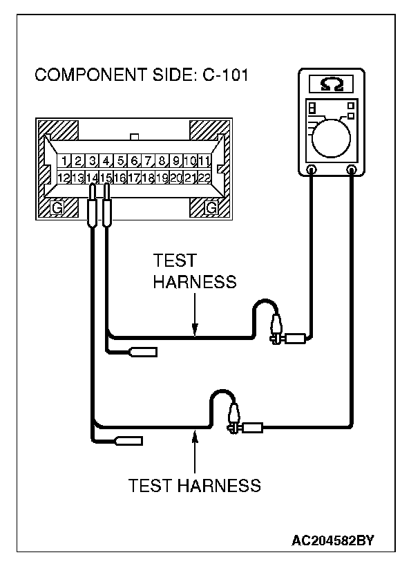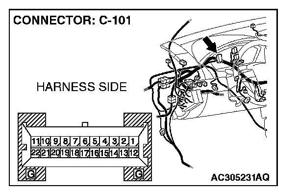 1. Disconnect combination meter C-101, and measure the resistance at the component side of combination meter connector C-101.