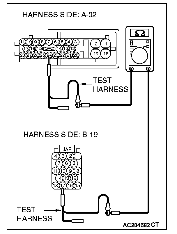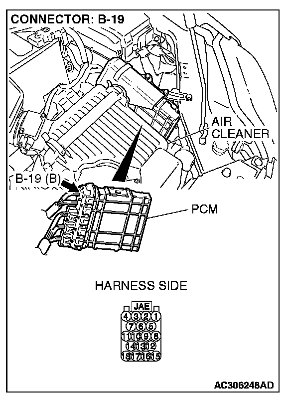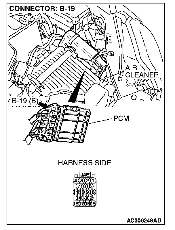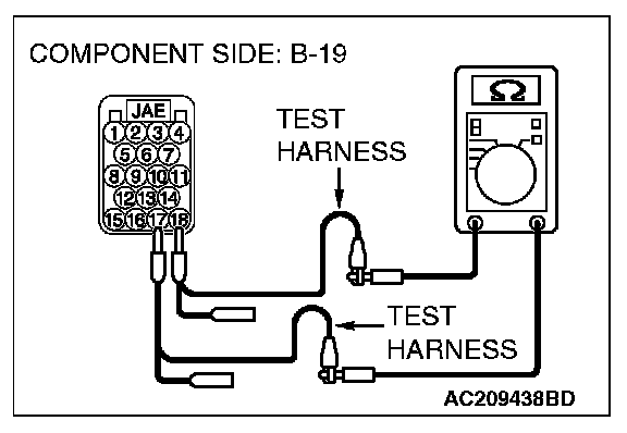 1. Disconnect powertrain control module connector B-19, and measure the resistance at the component side of powertrain control module connector B-19.