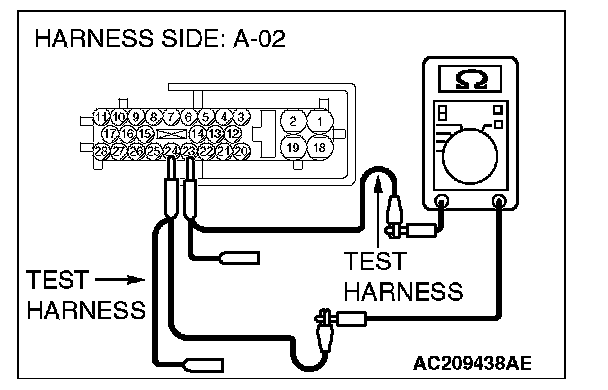 STEP 14. Check the ABS-ECU for open circuit. Measure the resistance at ABS-ECU connector A-02.