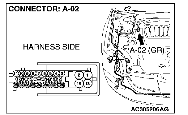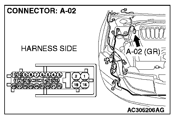 STEP 9. Check ABS-ECU connector A-02 and powertrain control module connector B-19 for loose, corroded or damaged terminals, or terminals pushed back in the connector.
