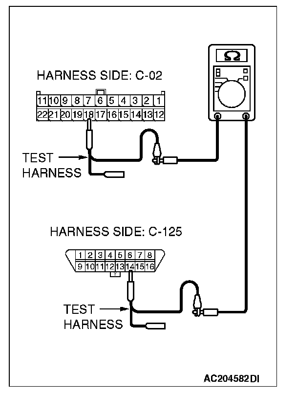 1. Disconnect joint connector (3) C-02, and measure the resistance between the wiring harness side connector of joint connector (3) C-02 and wiring harness side connector of data link connector C-125.