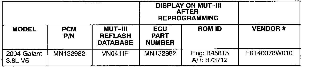 ^ If the ROM ID is the same or higher than the ROM ID in the table, the PCM has already been reprogrammed for this concern.