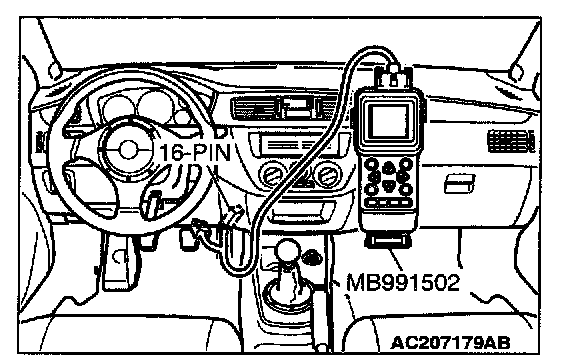 1. Connect scan tool MB991502 to the 16-pin data link connector.