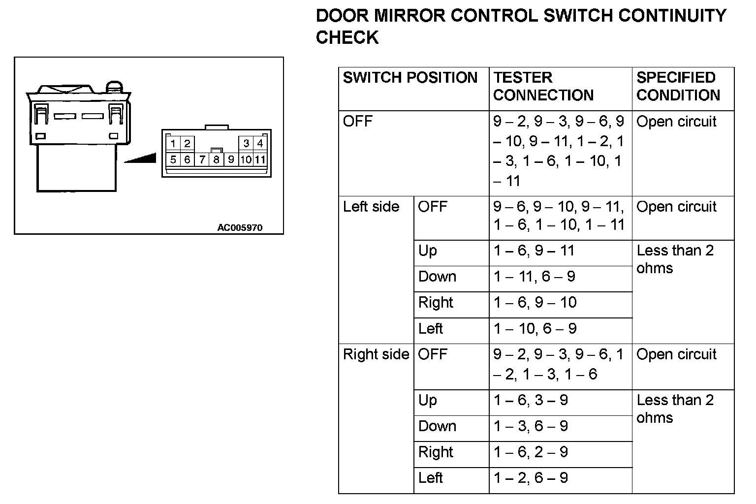 DOOR MIRROR CONTROL SWITCH CONTINUITY CHECK