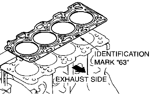 2. Assemble to the cylinder block so the cylinder head gasket identification mark "63" is at the top surface and on the exhaust side.
