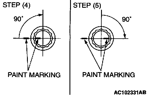 6. If tightening the bolt 90 degree angle results in moving the paint mark on the bolt past the paint mark on the cylinder head, remove the bolt and start over from step 1.