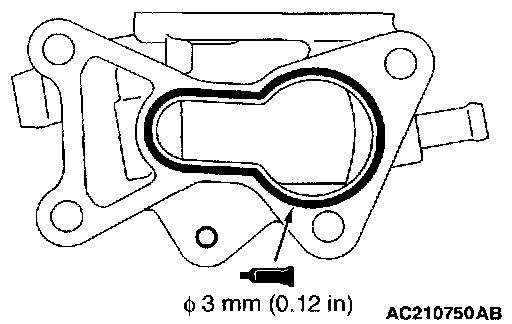 2. Apply a bead of the sealant to the cylinder head mating surface of the thermostat case as shown.