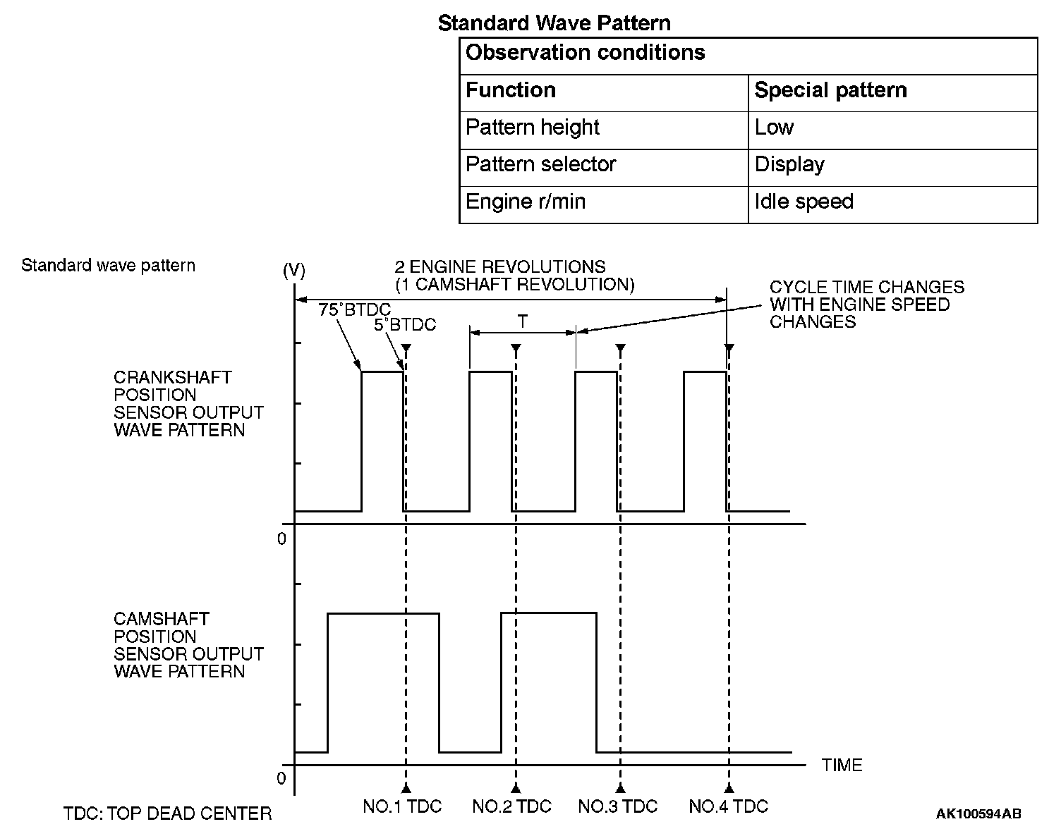 1. Connect the oscilloscope probe to ECM terminal No. 88. (Check the camshaft position sensor signal wave pattern.)