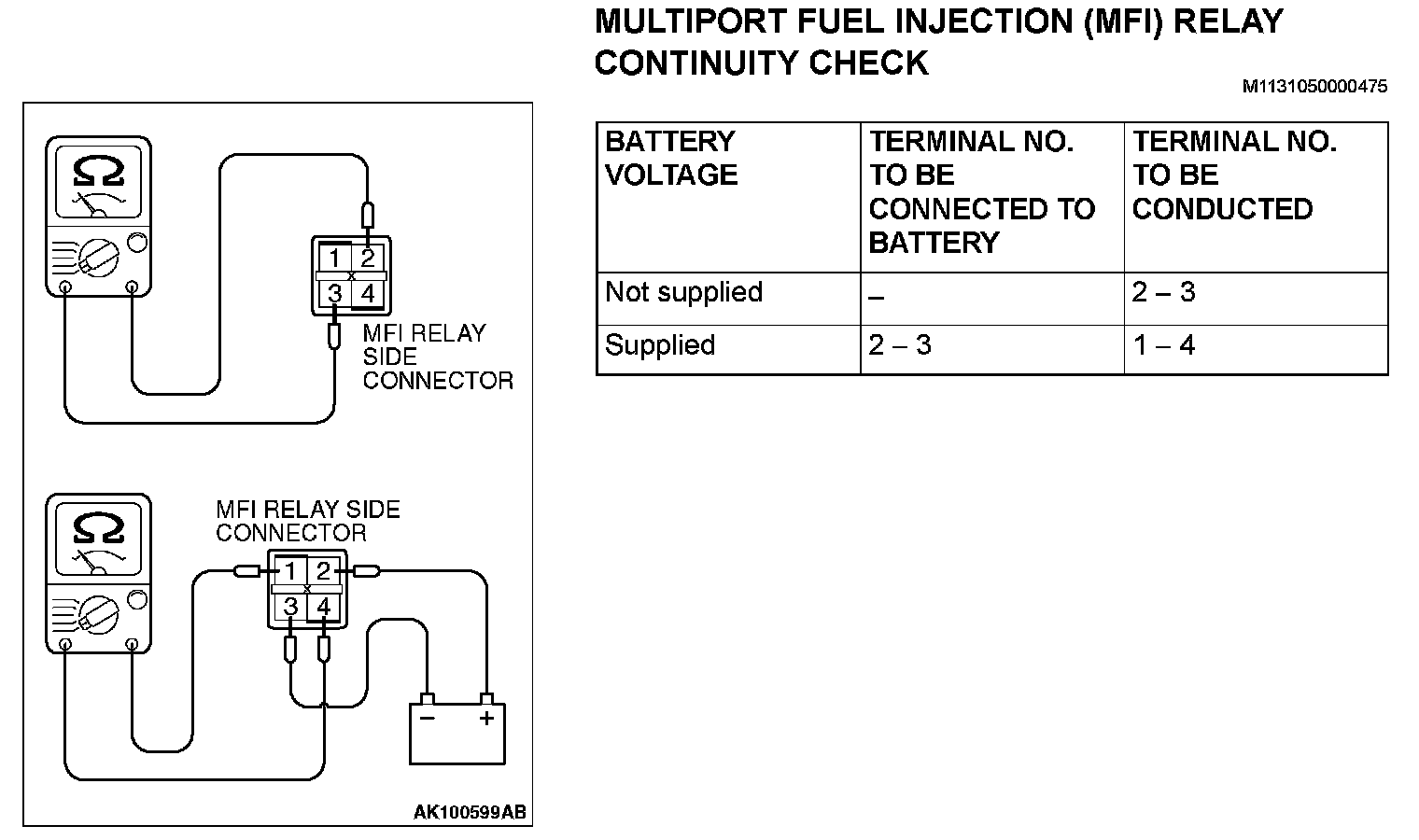 Main Relay (Computer/Fuel System): Testing and Inspection