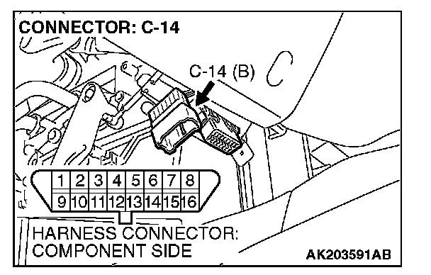 STEP 1. Measure the power supply voltage at data link connector C-14.
