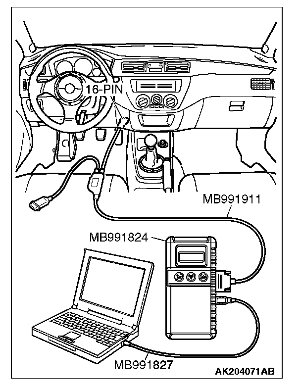 1. Connect scan tool MB991958 to the data link connector.