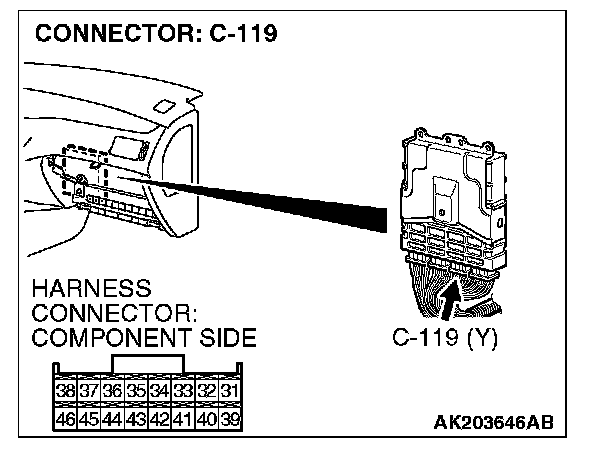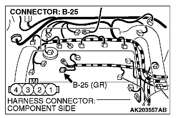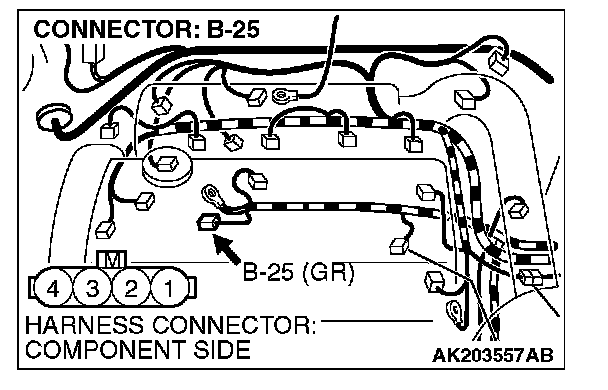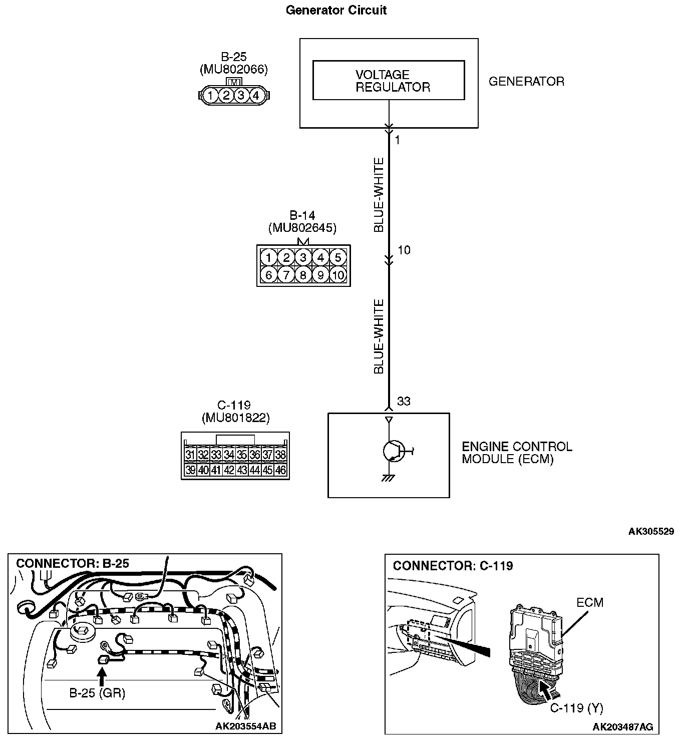 STEP 5. Check for open circuit and short circuit to ground and harness damage between generator connector B-25 (terminal No. 1) and ECM connector C-119 (terminal No. 33).