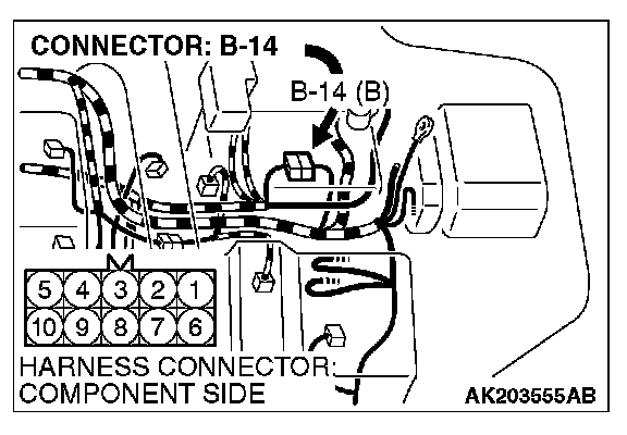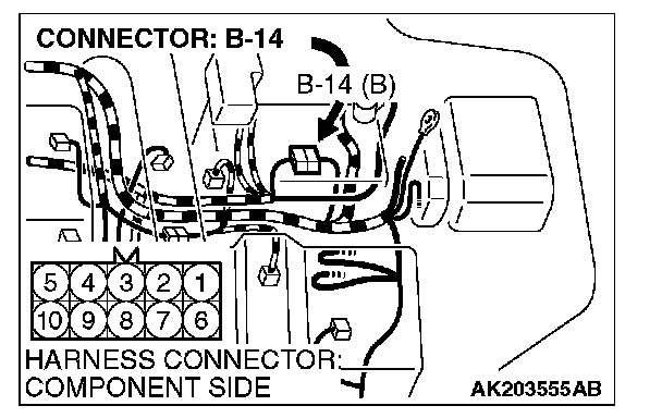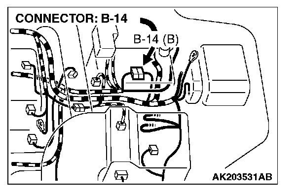 NOTE: Check harness after checking intermediate connector B-14. If intermediate connector is damaged, repair or replace it. Refer to Harness Connector Inspection. The confirm that the malfunction symptom is eliminated.