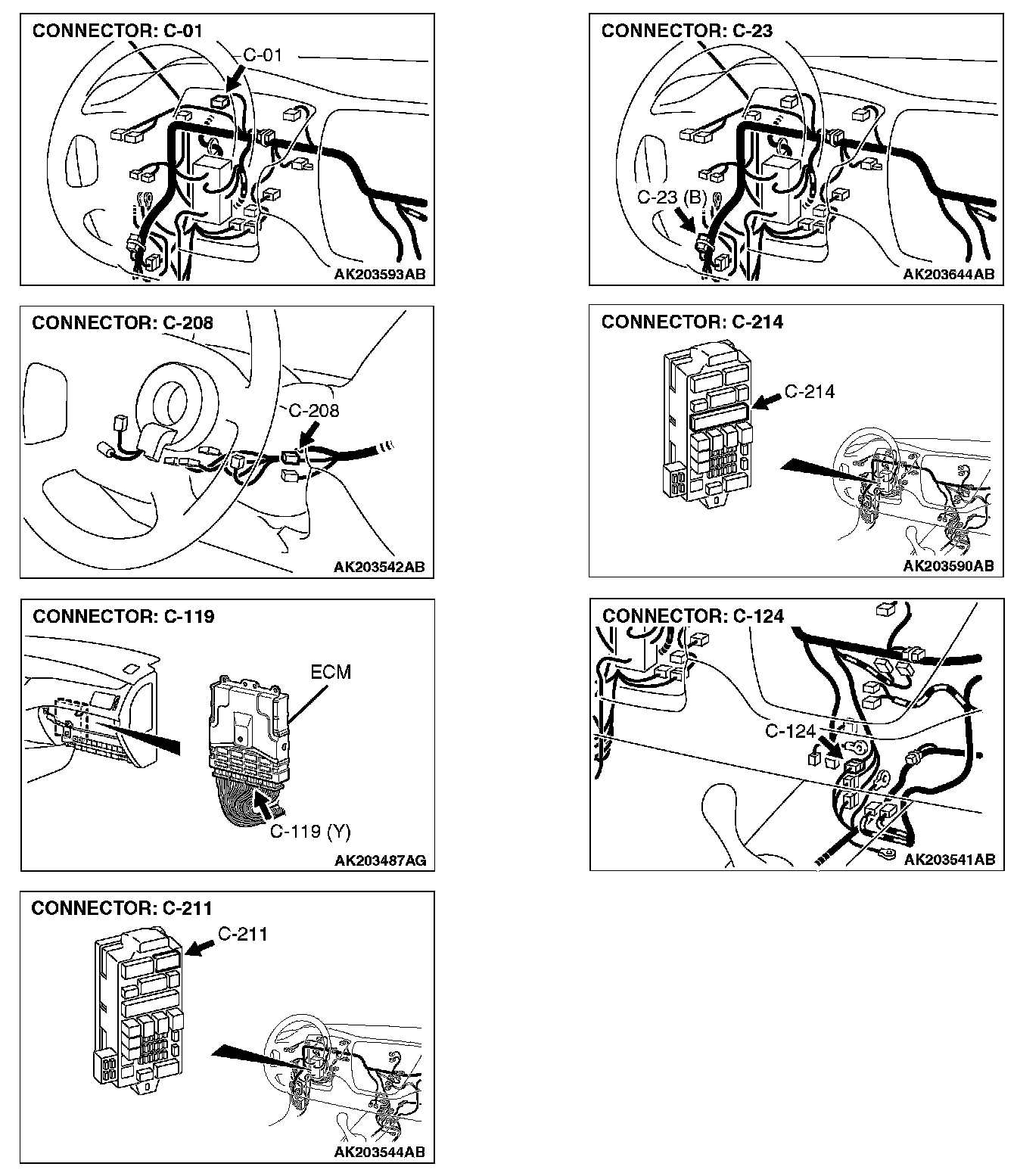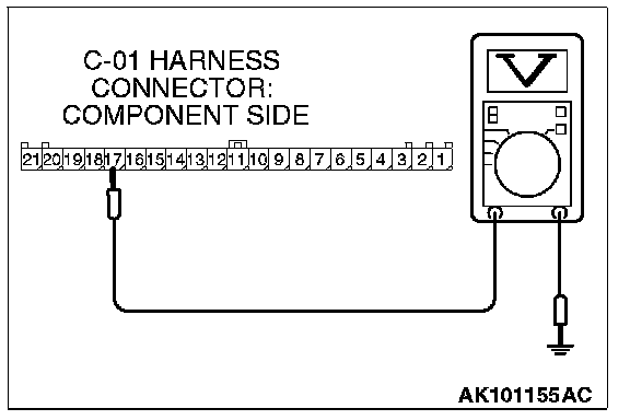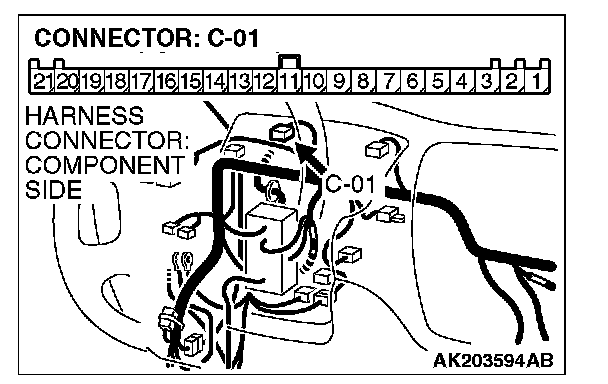 STEP 2. Check for continuity at combination meter harness side connector C-01.