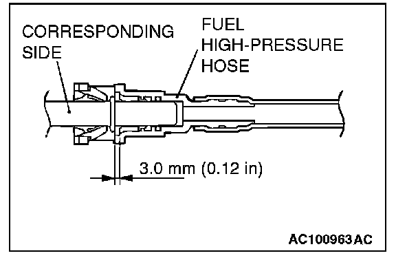 CAUTION: Snap the fuel high-pressure hose one-touch joint into place, then pull back slightly on the hose to assure it is secure. However, the connection should have a play of approximately 3.0 mm (0.12 inch).