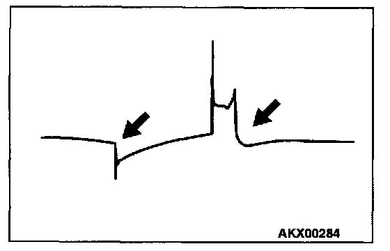 NOTE: Because of the two-cylinder simultaneous ignition system, the waves for two cylinders in each group appear during wave observation. However, wave observation is carried out for the cylinder (Number 1 or 3) with the spark plug cable which has been clamped by the secondary pickup.
