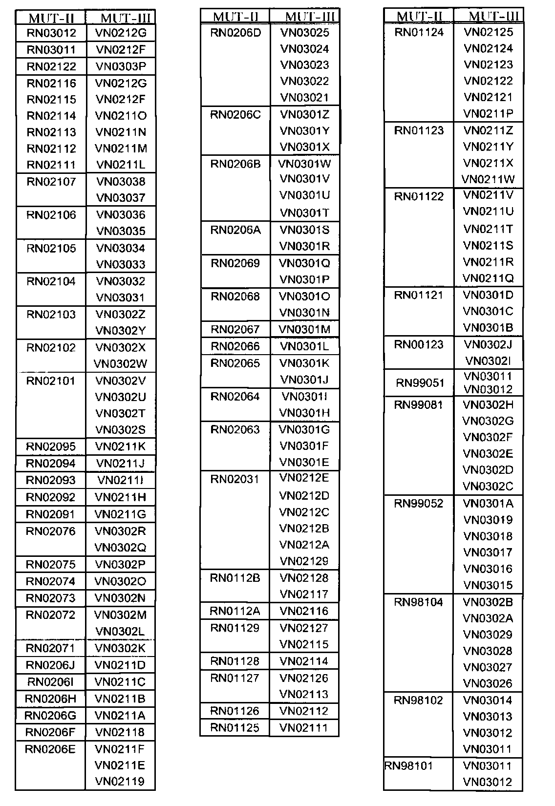 If you are using reprogramming information in a TSB that was issued before MUT-III reprogramming capability became available, use the tables to determine the appropriate MUT-III database number.