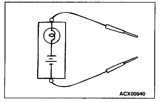 A test light consists of a 12 V bulb and lead wires. It is used to check voltages or short circuits.