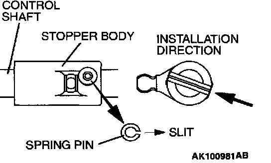 Drive in the spring pin so that the slit is in the direction shown in the figure.