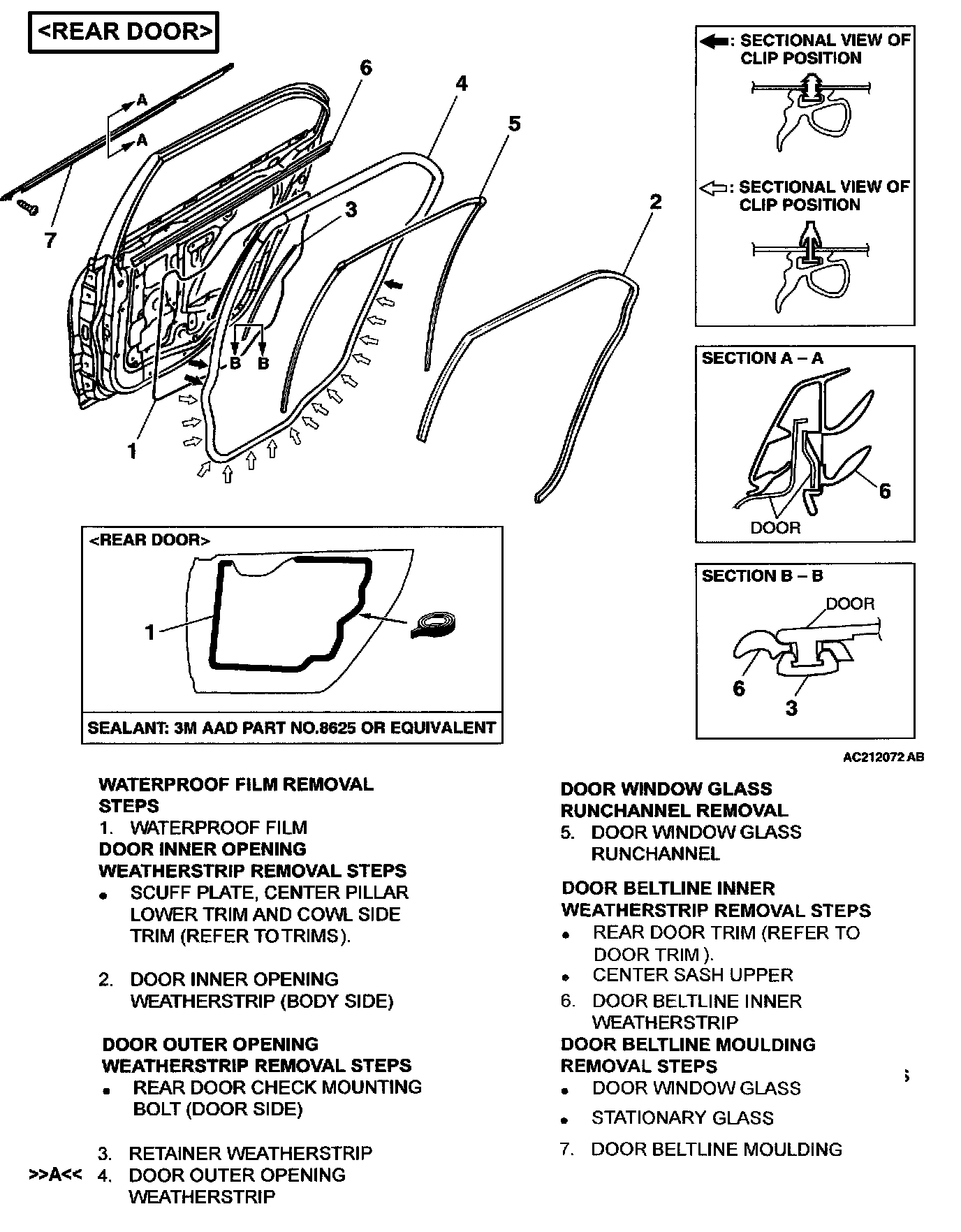 Rear Window Glass/Windshield...............................MT AAD Part No. 8609 Super Fast Urethane and 3 MT AAD Part No. 8608 Super Fast Urethane Primer or equivalent.