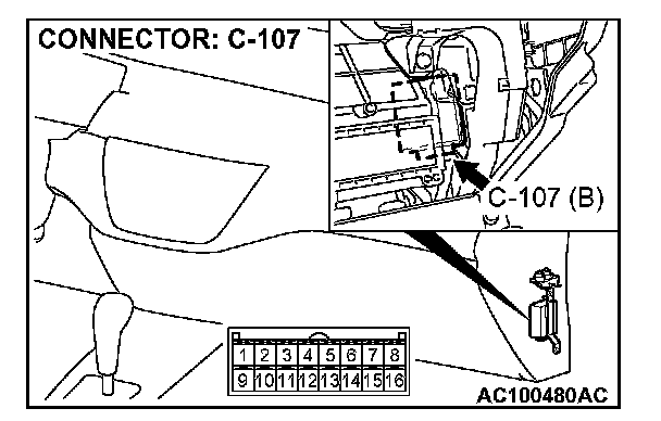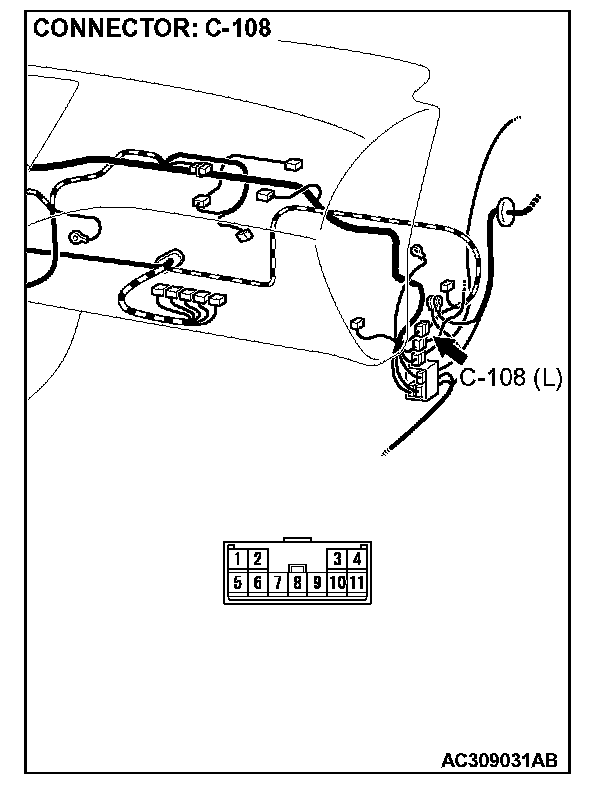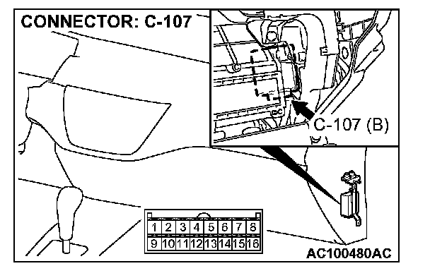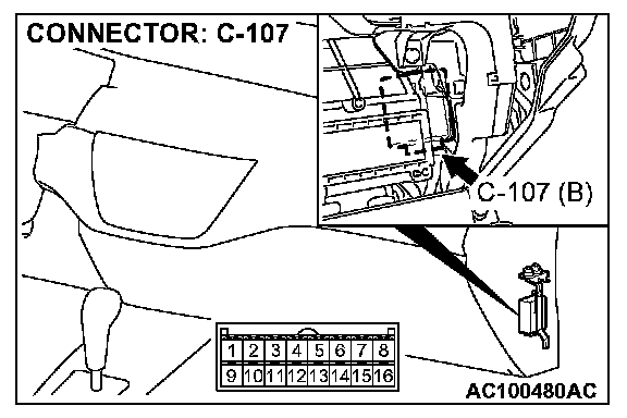STEP 8. Check auto-cruise control-ECU connector C-107 and intermediate connector C-108 for loose, corroded or damaged terminals, or terminals pushed back in the connector.