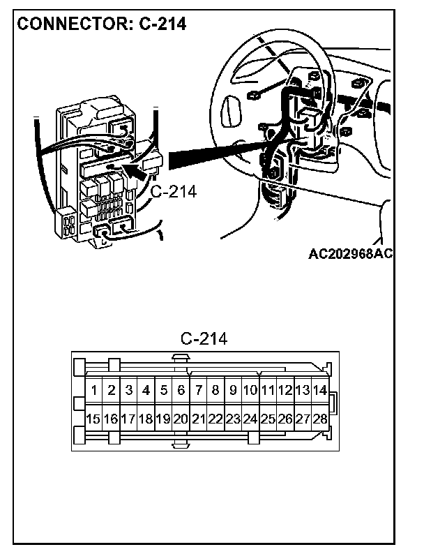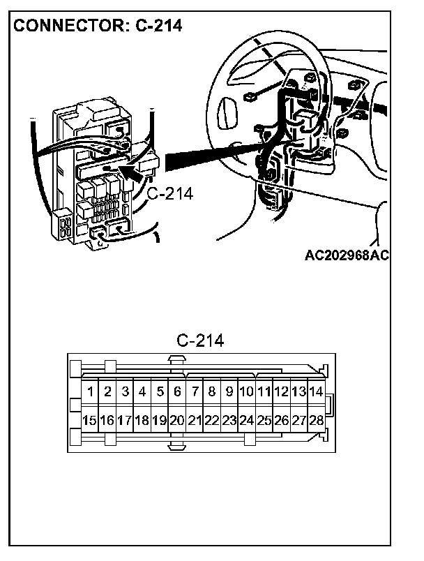 STEP 6. Check the harness wire between combination meter connector C-01 terminal 19 and junction block connector C-214 terminal 25 for damage.