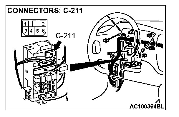 STEP 4. Check junction block connector C-211 for loose, corroded or damaged terminals, or terminals pushed back in the connector.