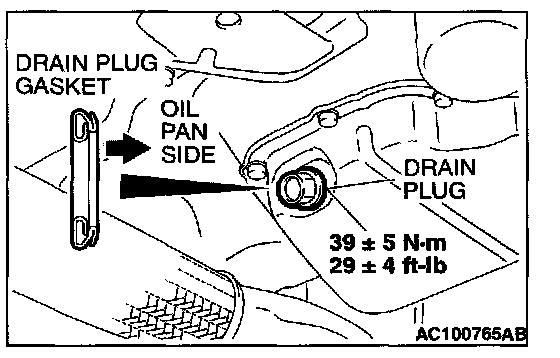 3. Replace the drain plug gasket with a new one, and then tighten the drain plug to the specified torque.