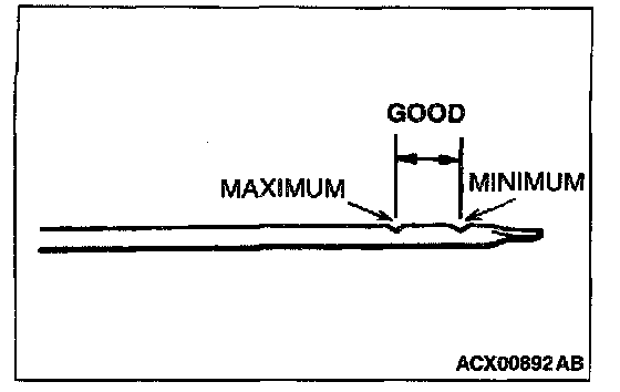 6. Stop the engine and check to ensure that the engine oil level is within the level range indicated on the dip stick.