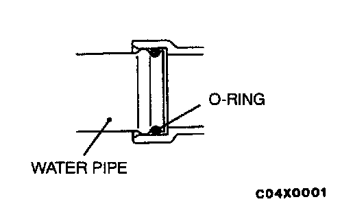 Insert the O-ring to the water pipe, and coat the outer portion of the O-ring with water or engine coolant.