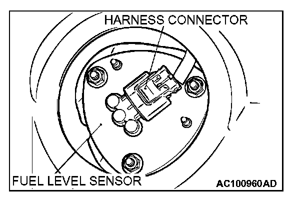 4. Remove the fuel level sensor mounting bolts and remove the fuel level sensor from service hole.