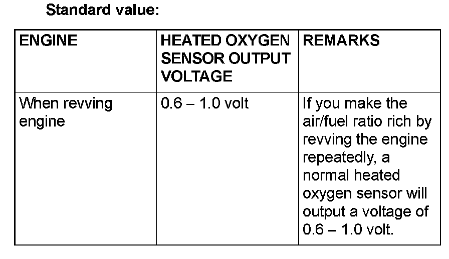 3. If the output voltage is not within the standard value, replace the heated oxygen sensor.