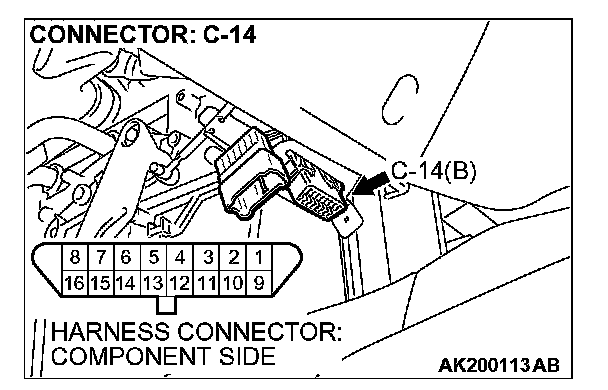 STEP 1. Measure the power supply voltage at data link connector C-14.