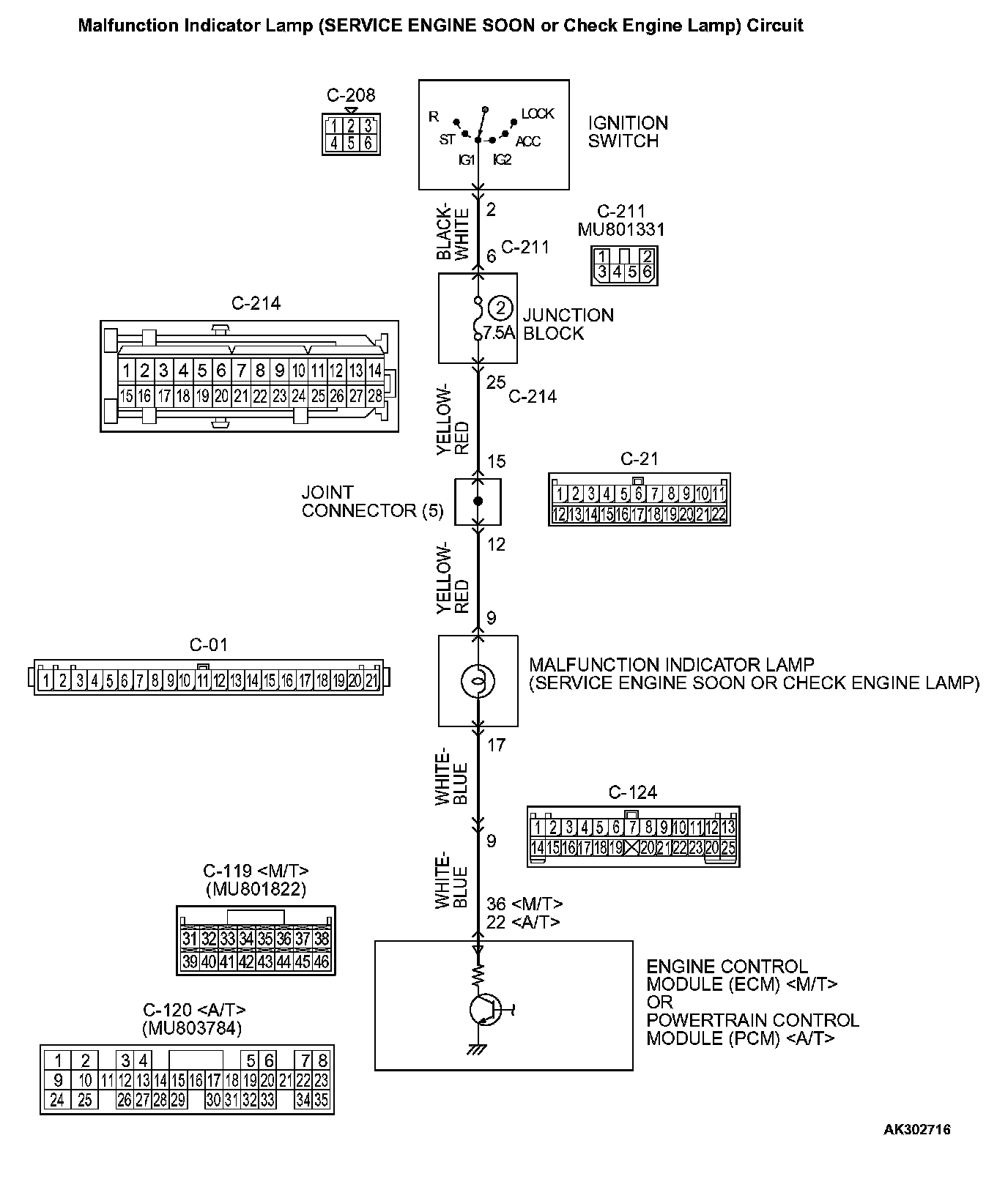 - The malfunction indicator lamp (SERVICE ENGINE SOON or Check Engine Lamp) power is supplied from the ignition switch.