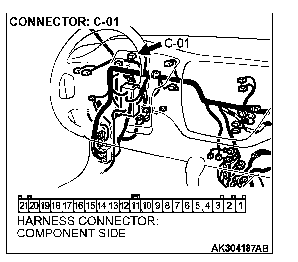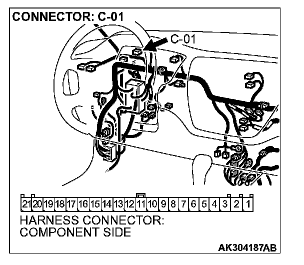 STEP 3. Check harness connector C-01 at the combination meter for damage.