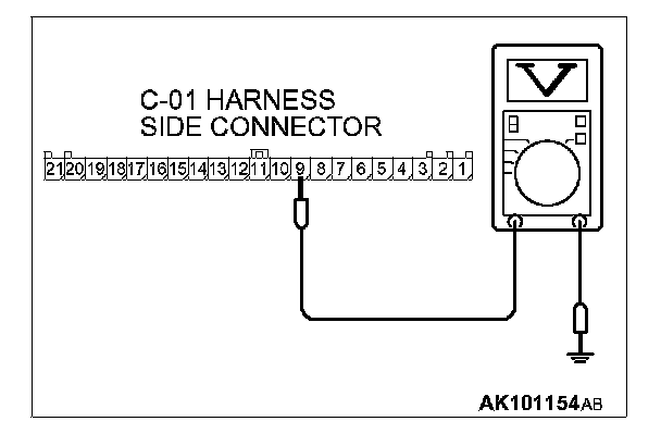 STEP 4. Measure the power supply voltage at combination meter harness side connector C-01.