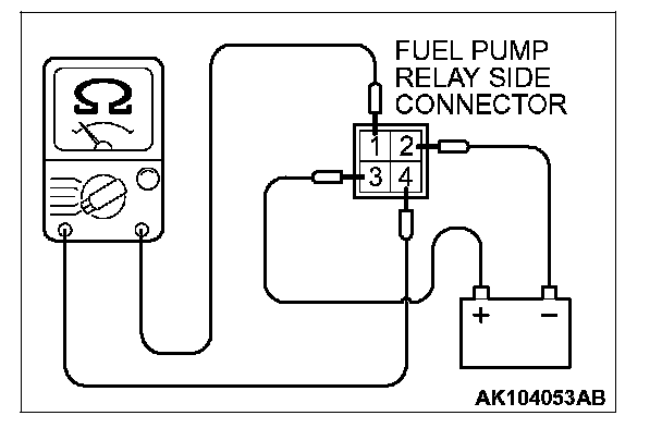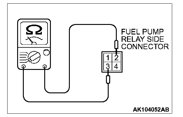 2. Check for continuity between the fuel pump relay terminals No. 2 and No. 3.