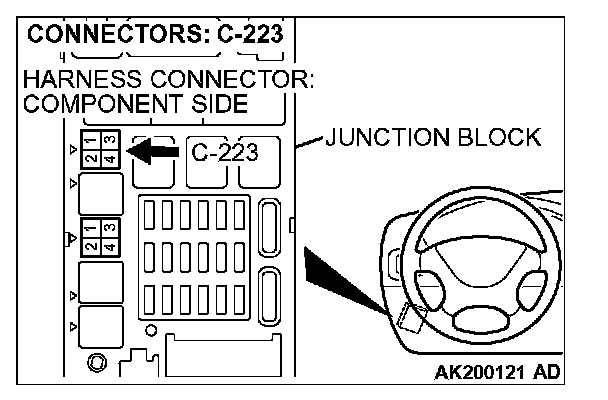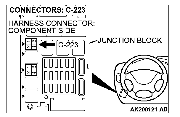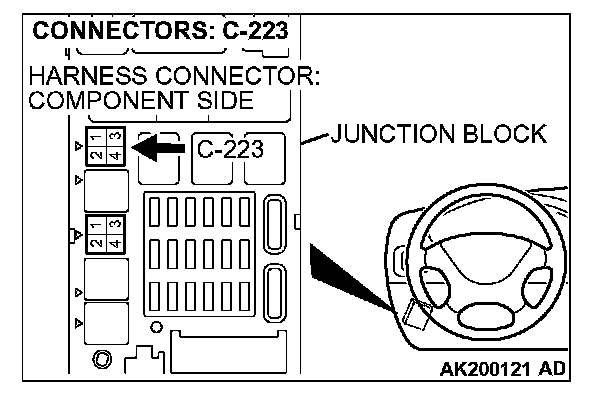 1. Disconnect the connector C-223 and measure at the harness side.