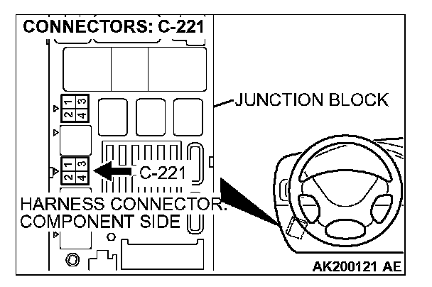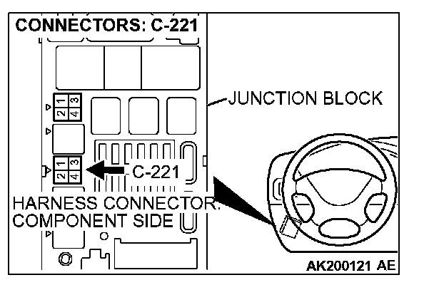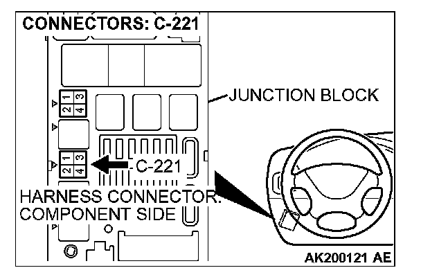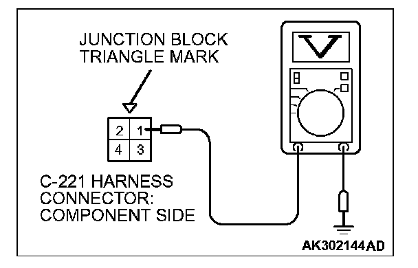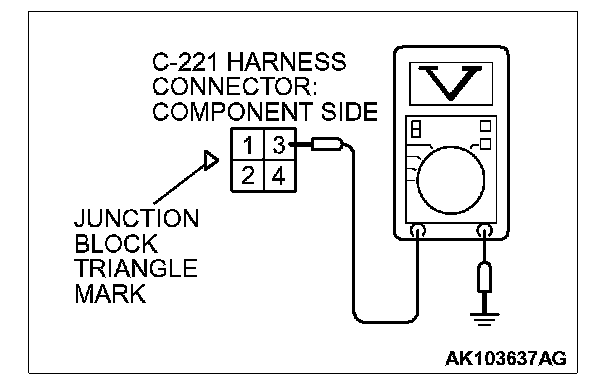 1. Disconnect the connector C-221 and measure at the harness side.